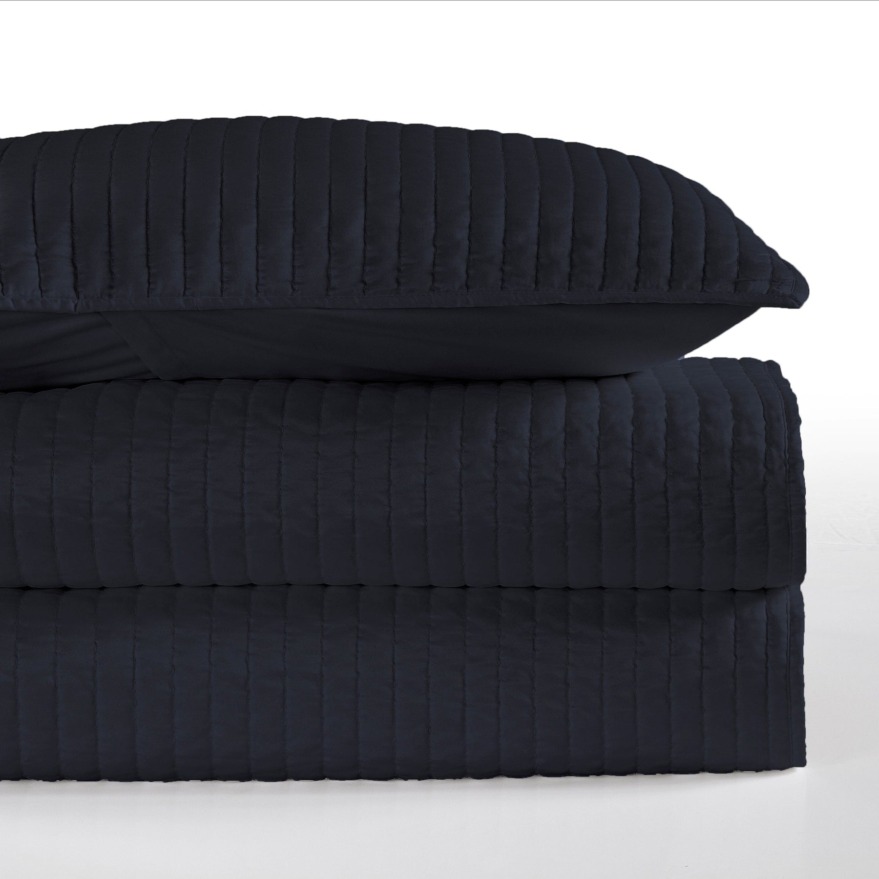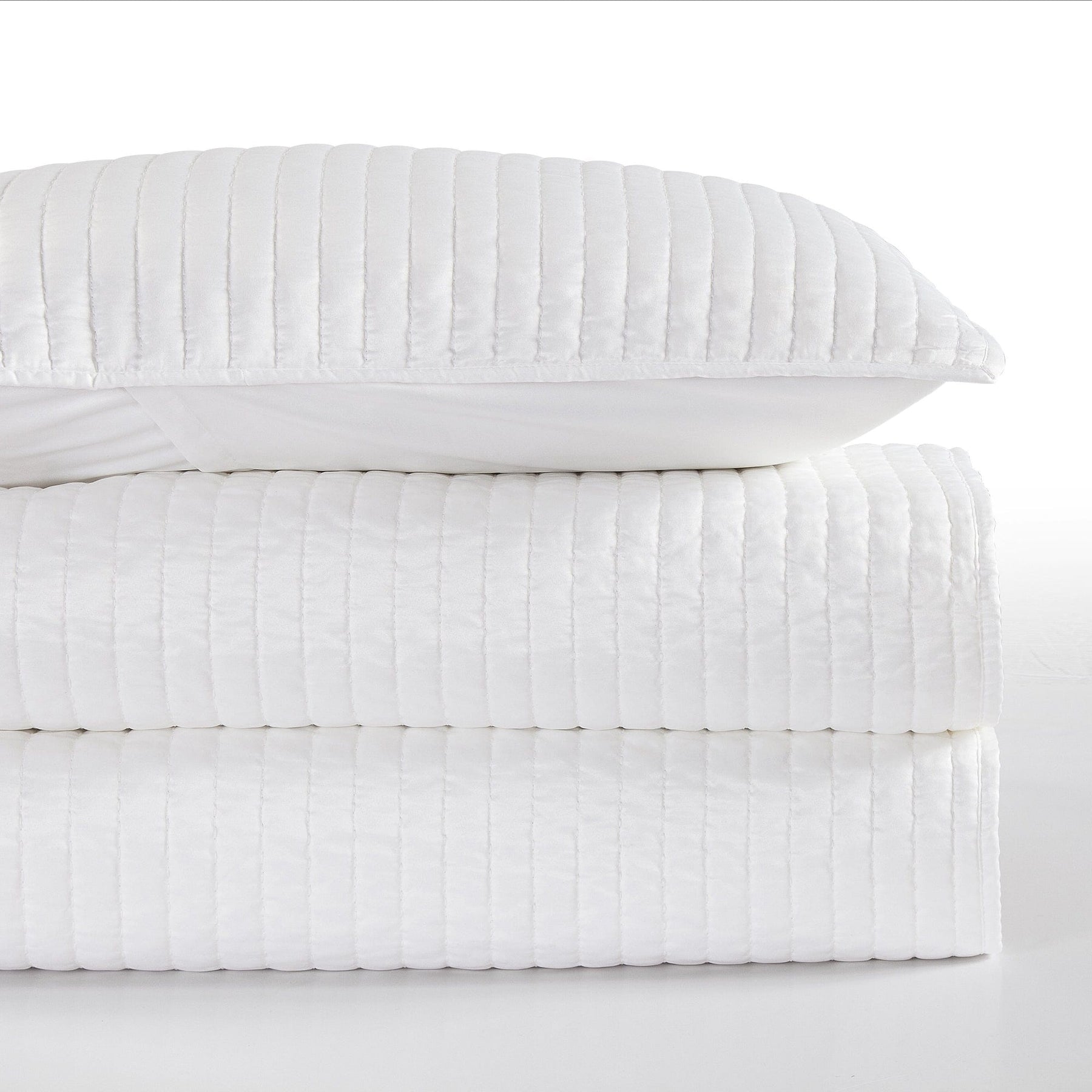 Indulge in the simple luxury of our 3-piece satin quilted coverlet set. With its channel stitched design, this set adds a touch of modern relaxation to any bedding ensemble. Available in 5 colors, it's the perfect layering accent and provides extra warmth for you and your guests. Complete with quilt and pillow shams, treat yourself to the ultimate in comfort and style.