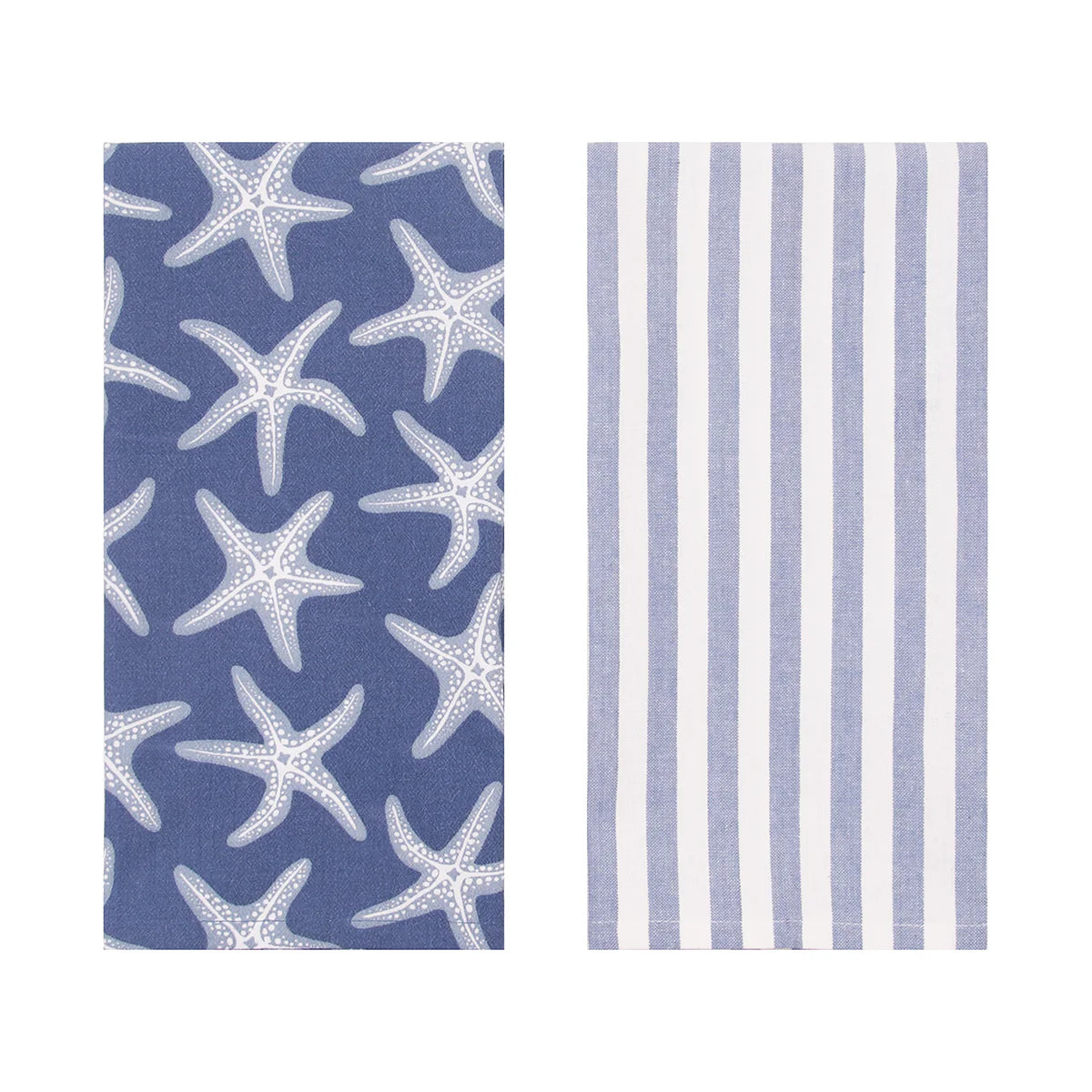 Transform your kitchen into a peaceful seaside retreat with the Calming Seas Dishtowel Set. This thoughtfully curated pair features a navy towel adorned with elegant white starfish imagery, evoking the tranquility of ocean shores, paired with a classic blue and white striped companion. Together, they create a cohesive coastal aesthetic that elevates your everyday kitchen routine. Whether you're drawn to nautical themes or simply crave the soothing essence of the sea, these versatile towels deliver both visual appeal and practical durability. Bring the calming influence of coastal living into your home with this charming, functional set.