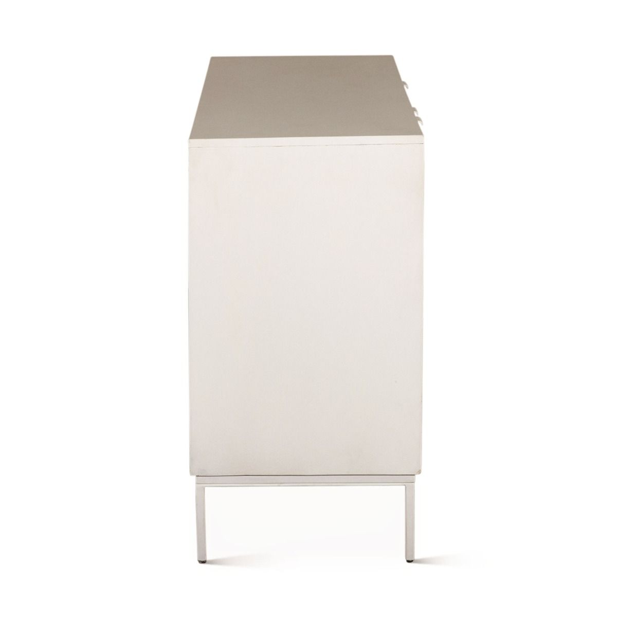 The Fern 57" Sideboard combines coastal charm with natural artistry. Made from sustainable solid wood and coated in a crisp Coastal White, it showcases three doors decorated with delicately hand-carved leaf patterns. Its modern white metal legs add a sophisticated touch, enhancing the organic aesthetic. With ample interior storage, this sideboard offers both practicality and style—ideal for dining rooms, entryways, or living spaces. A distinguished storage piece perfect for trade professionals, designers, and wholesale buyers looking for enduring elegance.