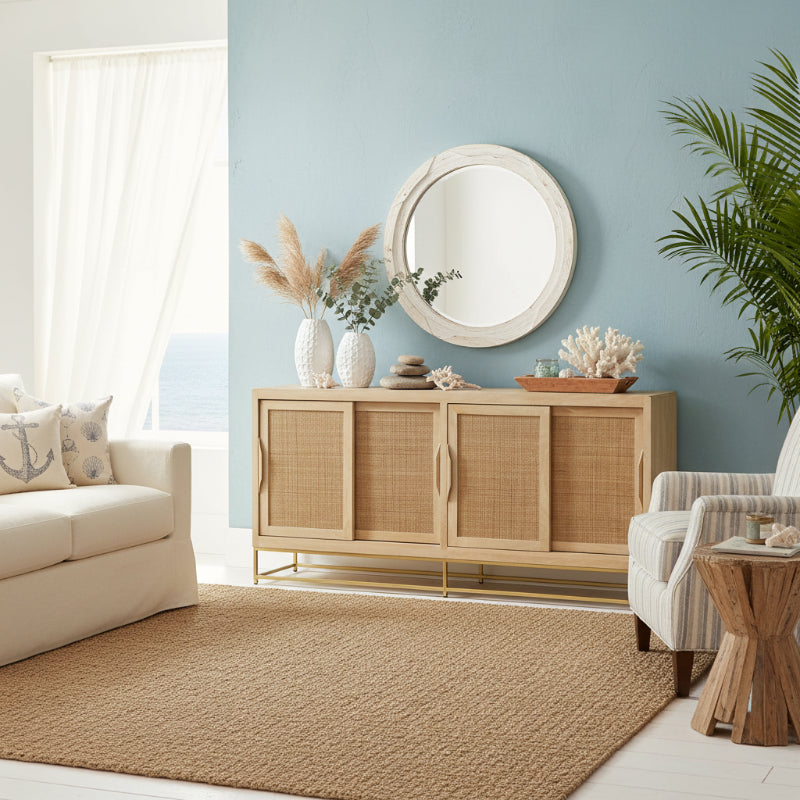 Arched Rattan Cabinet - Solid Wood Storage with Natural Elegance